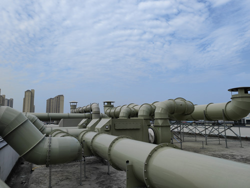實驗所室工業廢氣 → 化學活化炭油煙凈化器器 → 引軸流風機 → 尾氣排放
